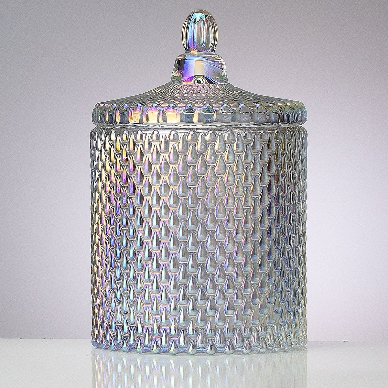 the most beautiful iridescent glass jar to hold your stardust or anything you can dream of. with it's large capacity you can fit your dusting powder and puff all contained in this aesthetically pleasing rainbow glass jar.